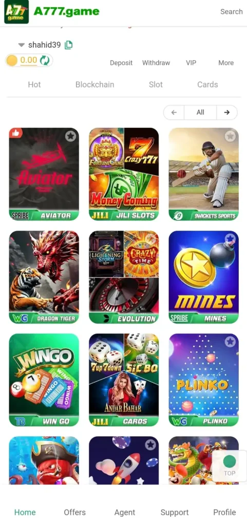 - Open the App – Launch the A777 Game app on your device.