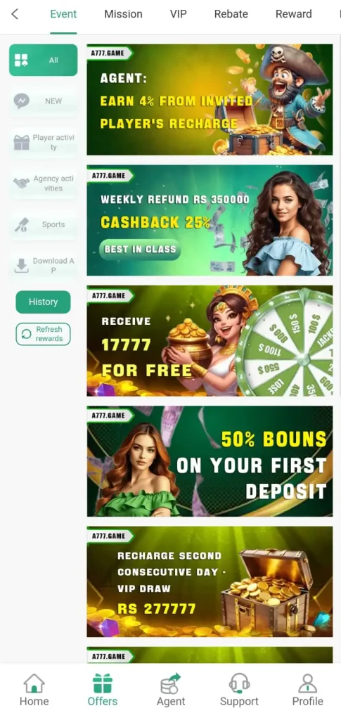 What makes it stand out is the ability to earn without even playing, yes, really! Through its referral system, you can invite friends and earn PKR 300 per signup. From welcome bonuses to daily login rewards, A777 gives plenty of chances to win without breaking the bank. With just PKR 100, you can start playing and multiply your earnings in minutes if you play smart. It’s fast, it’s fun, and with a little effort, it can be seriously rewarding.