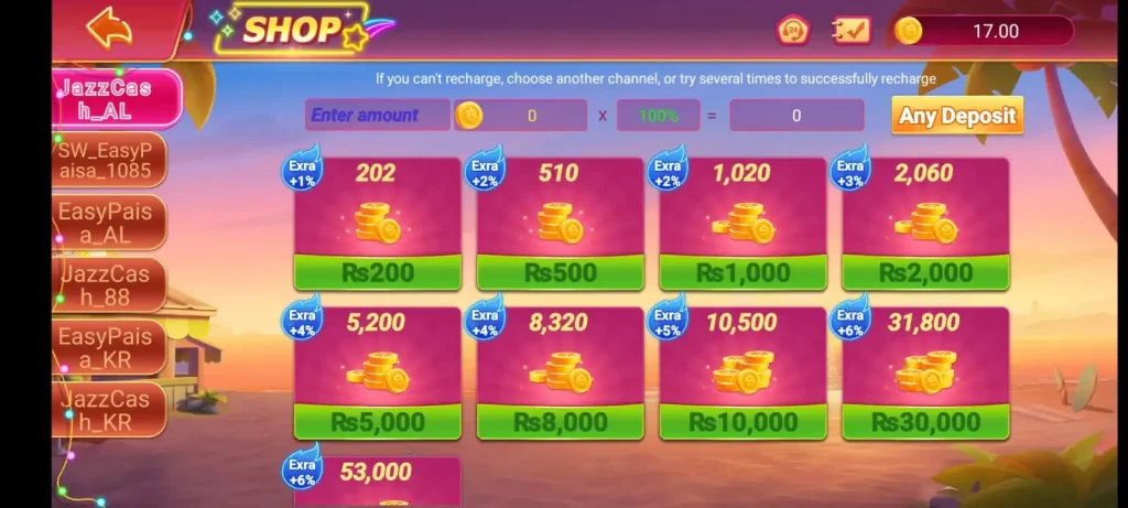 HE777 Game is a popular online gaming platform that offers a wide selection of card games, betting games, and skill-based games like Rummy, Poker, and Crash. What makes this game stand out is its ability to combine entertainment with real money-earning opportunities. Players can engage in thrilling card games while earning cash rewards based on their performance. Its easy-to-navigate interface and transparent policies have attracted a large, loyal user base in Pakistan. Download also PKR888 GAME.