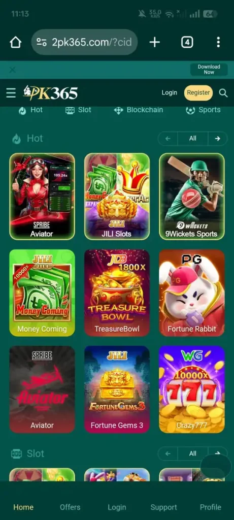 PK365 Game is a fun and easy-to-use online casino app made for people in Pakistan. It offers over 200 exciting games, including popular card games like Teen Patti and Rummy. The app also has slot games, fishing games, and sports games, giving players many choices to enjoy and earn real money. What makes it special is the bonus system you can includes a welcome bonus, daily rewards, and free spins.