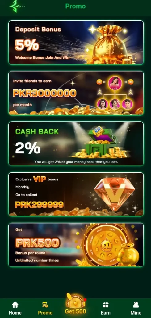 You can earn by playing games, placing bets, joining daily and weekly events, and receiving login bonuses and deposit rewards. The more you play, the more chances you have to earn.